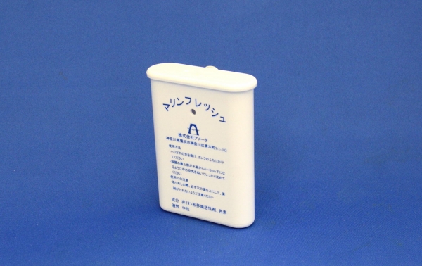 非イオン系界面活性剤を用いたトイレ用インタンク式洗浄剤(シスタンク内に吊るします)です。ブルーの洗浄水が流れトイレを爽やかに保ちます。水温により多少変化することがありますが、やわらかな色で約800~1,000回使用いただけます。流水が無色のものもございます。